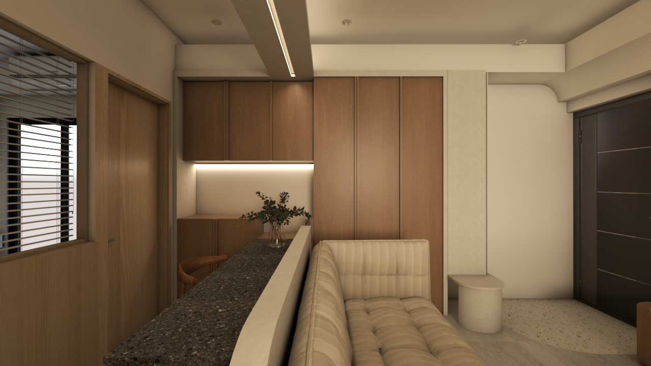 設計重點: 搭配「拍拍手」五金(按壓式彈跳器),外觀無把手且縫隙極細,能達到完全平齊的偽裝效果。