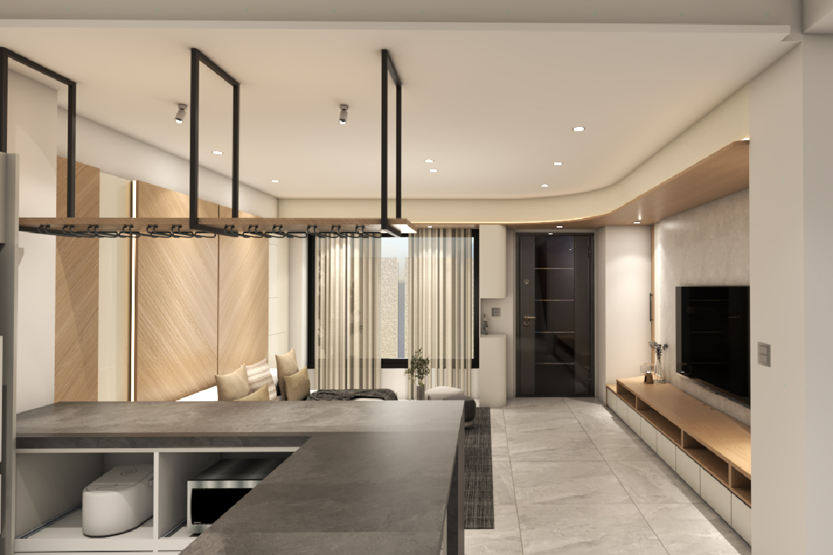 👉 開放式廚房+中島爐具,抽油煙設備效能絕對不能妥協,否則全室都是油煙味。